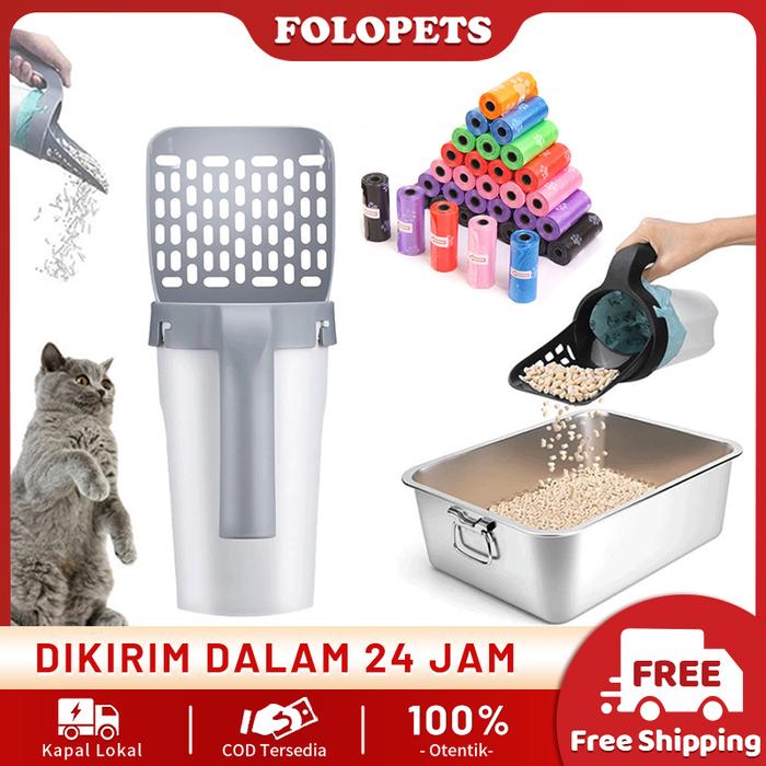 FOLOPETS Sekop Pasir Kucing 29x12cm - Bonus Dispenser Kantong Plastik Praktis & Awet! "