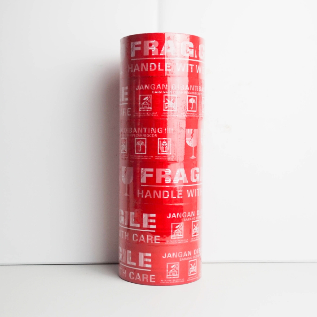 Lakban Fragile 48mm x 80 Yard Merah - 1 Pcs/Roll Satuan - Motto Tape