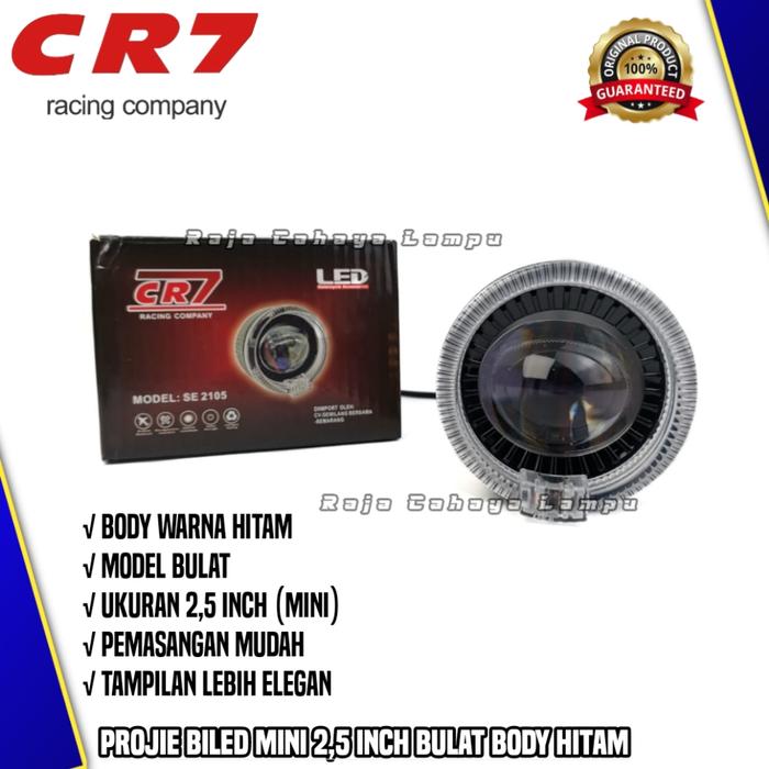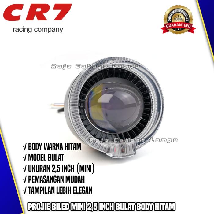 Lampu Projie Biled Mini 2,5 Inch Cr7 Se 2105 Model Bulat Body Hitam High Low Cut Off Devil Plus Shourd Universal Motor