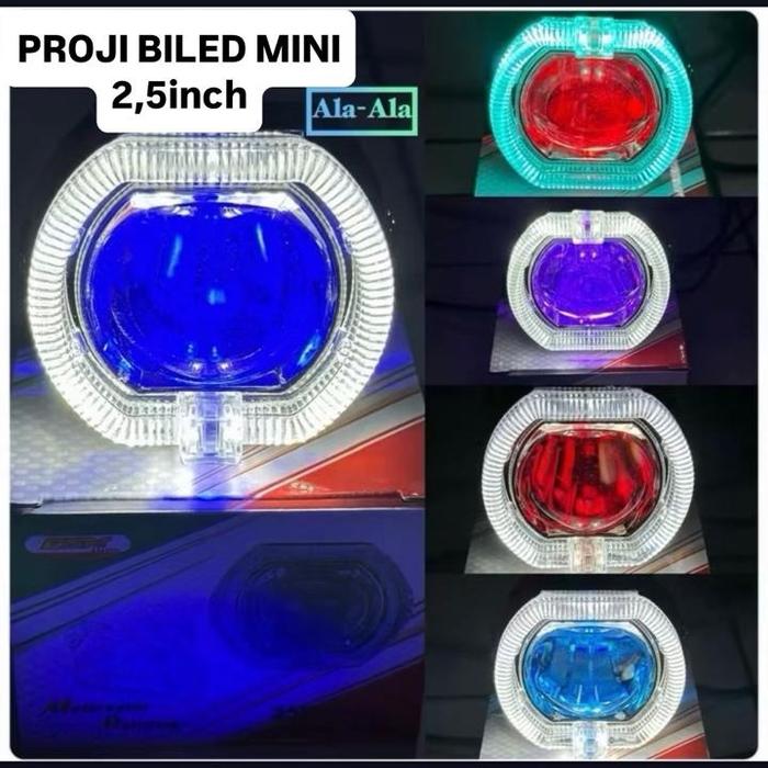 Imw - Projie Biled Cut Off Mini 2.5 Inc D2 D3 Jauh Dekat Waterproof Plus Devil Ala Biled Pnp Semua Motor - Biru Ring Put