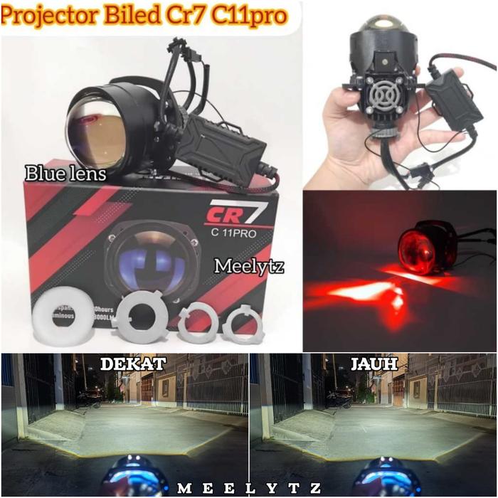 Projector Biled Cr7 C11Pro Blue Lens High Low Putih 2,5Inc Plus Devil Dan Kipas Pendingin - Devil Merah