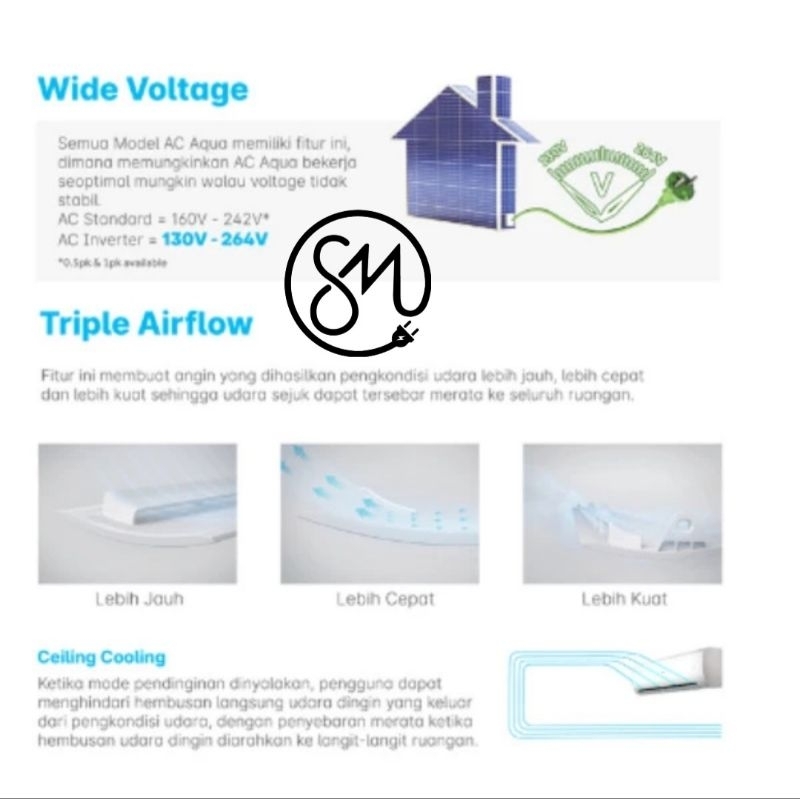 AC AQUA 1/2 PK AQA-KCR5FQDL instan 5FQDL 0.5 turbo cool low watt 360w