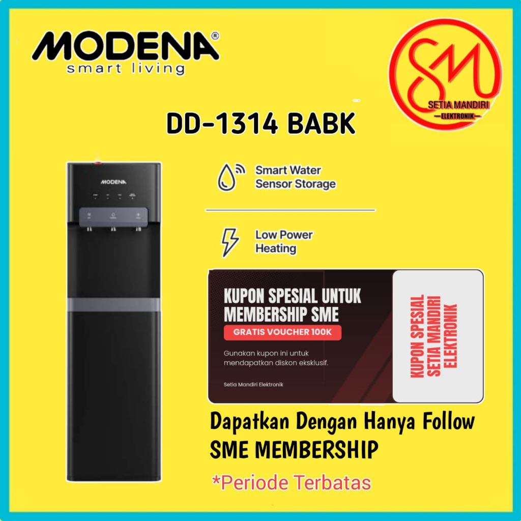 MODENA DD1314BABK Dispenser Air Galon Bawah Bottom Loading Panas, Dingin, & Normal DD 1314 BABK SMEC