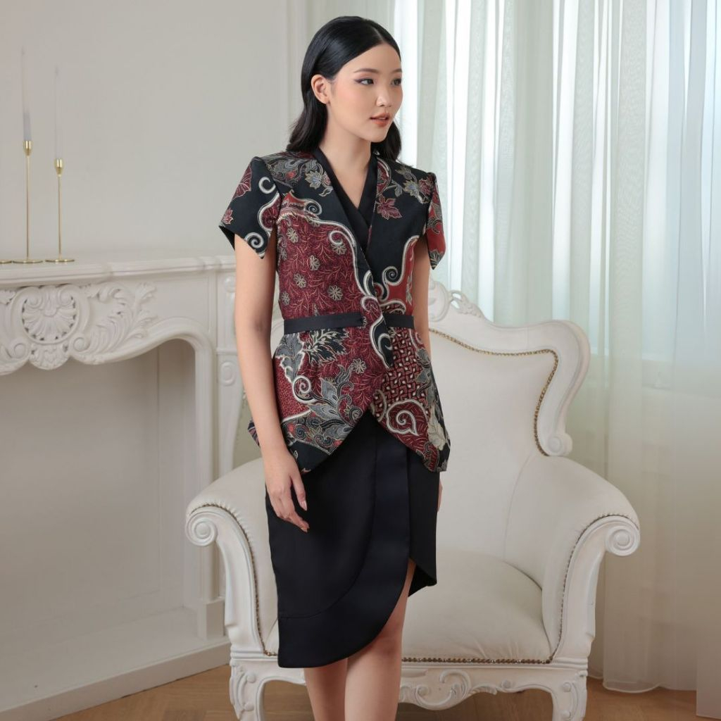 Surin - Celestara Blazer Batik Wanita Atasan Casual, Atasan Top Batik Semi Formal Wanita, Blouse Batik, Crop Top Kemeja