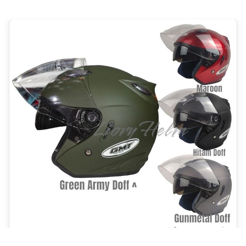 Helm Sepeda Motor Half Face Double Visor GMT Original/Helm Pria Wanita/Helm SNI/Helm Murah Army Doff