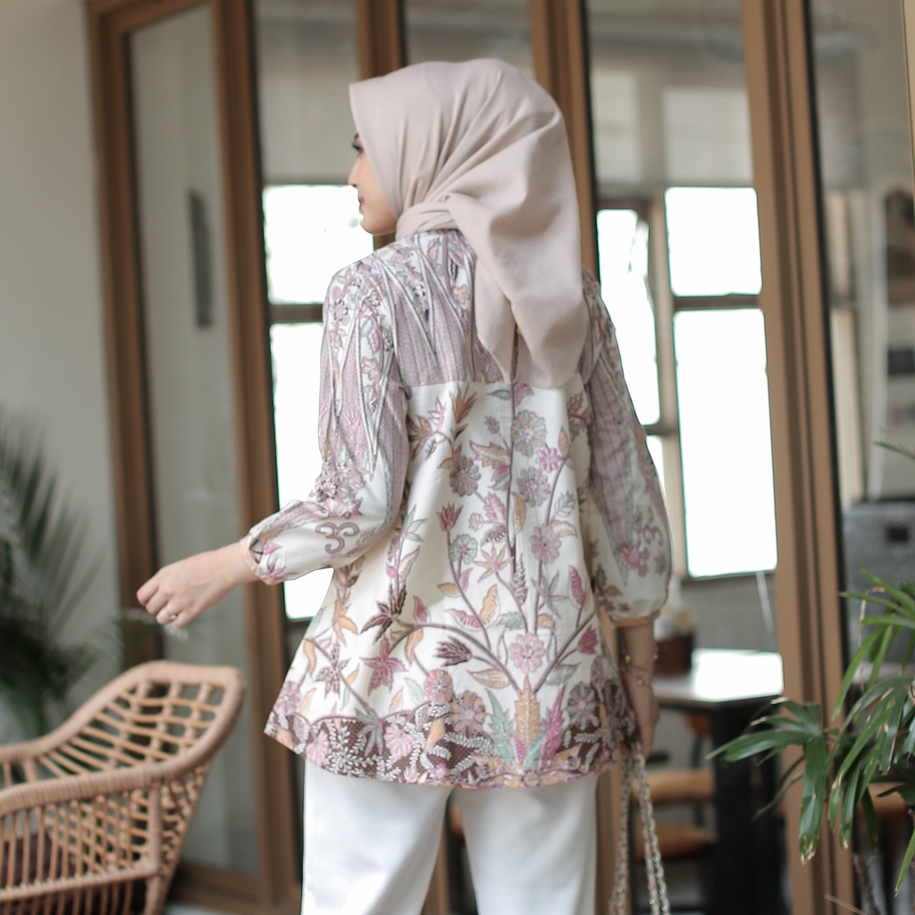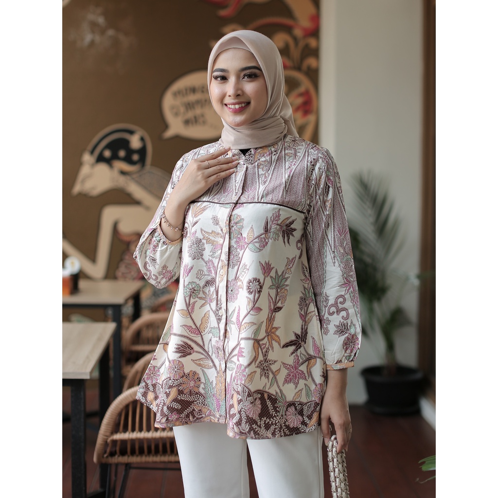 Kanaya Atasan Wanita Blouse Batik Kerja Kancing Depan Busui Friendly Katun Model A-Line