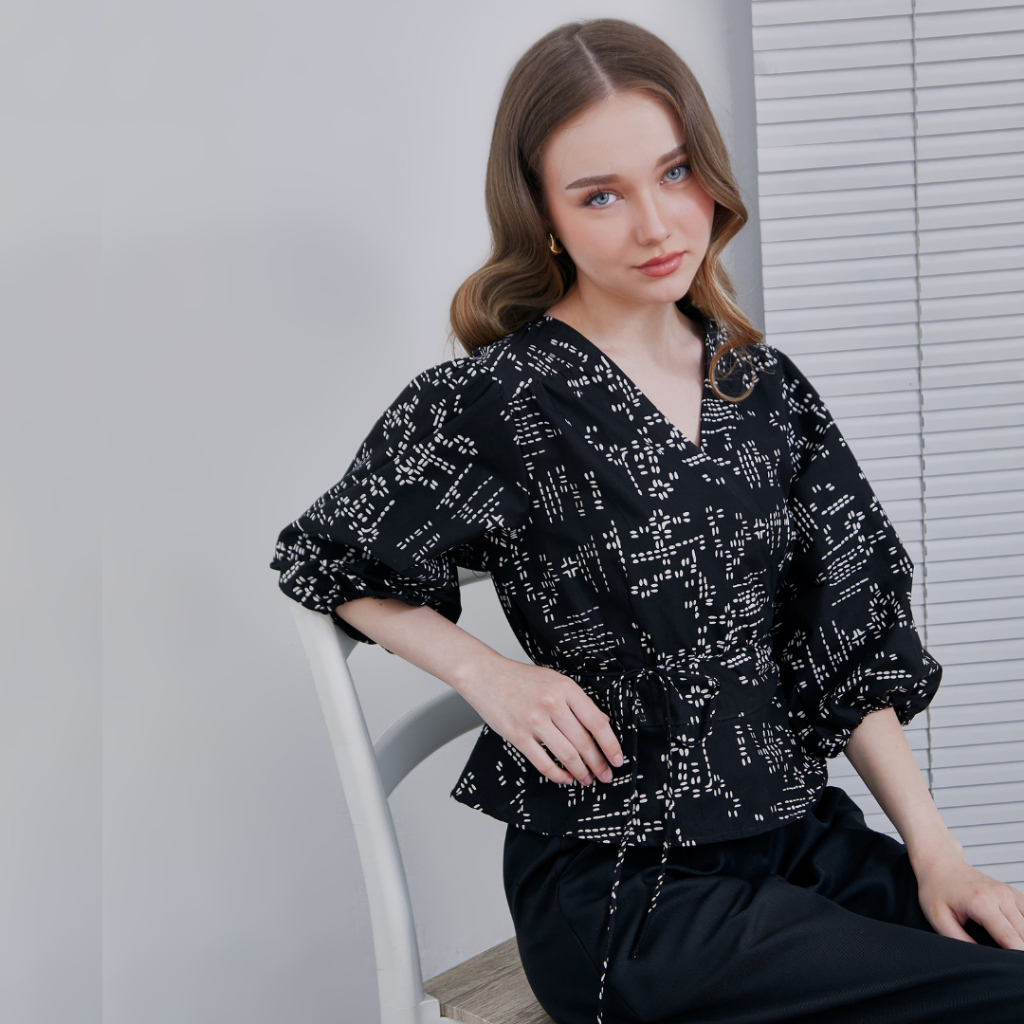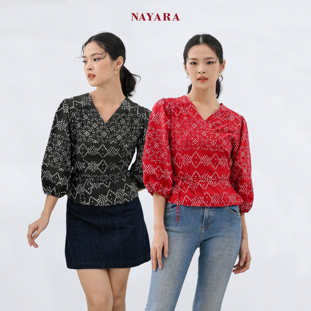 Nayara Clara Blouse Batik Cotton Kerah V Neck Fashion Wanita