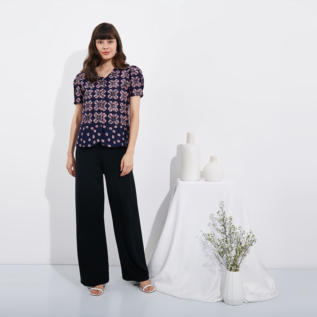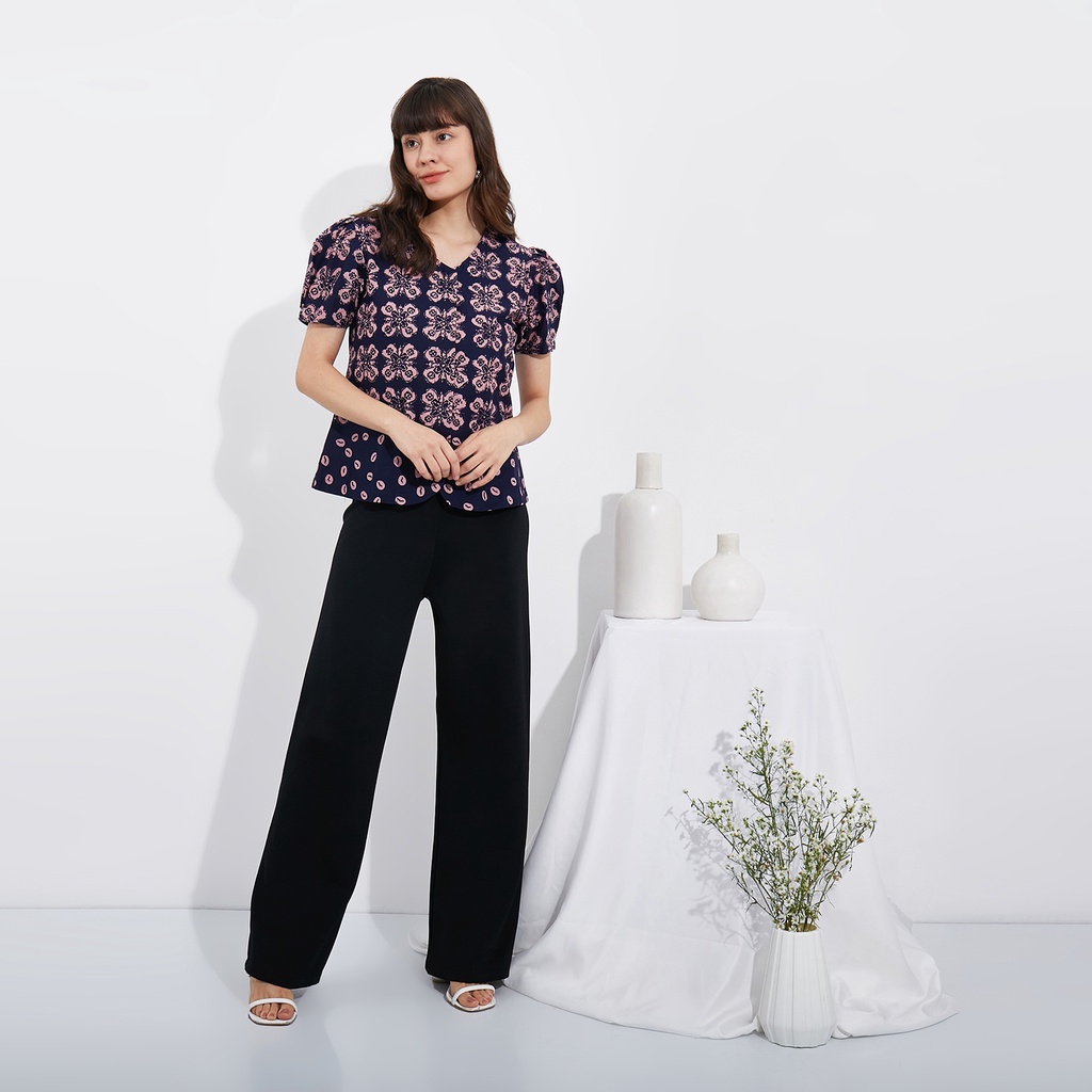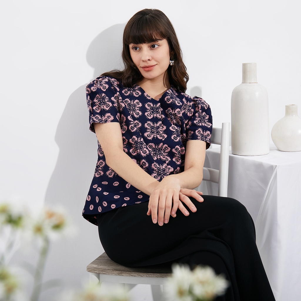 Nayara Aysel Blouse Batik Cotton Kerah V Neck Fashion Wanita