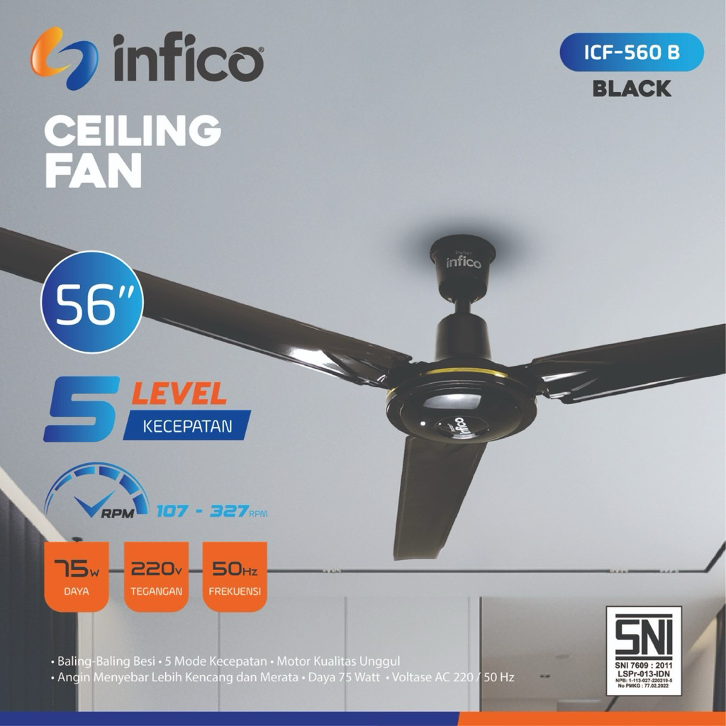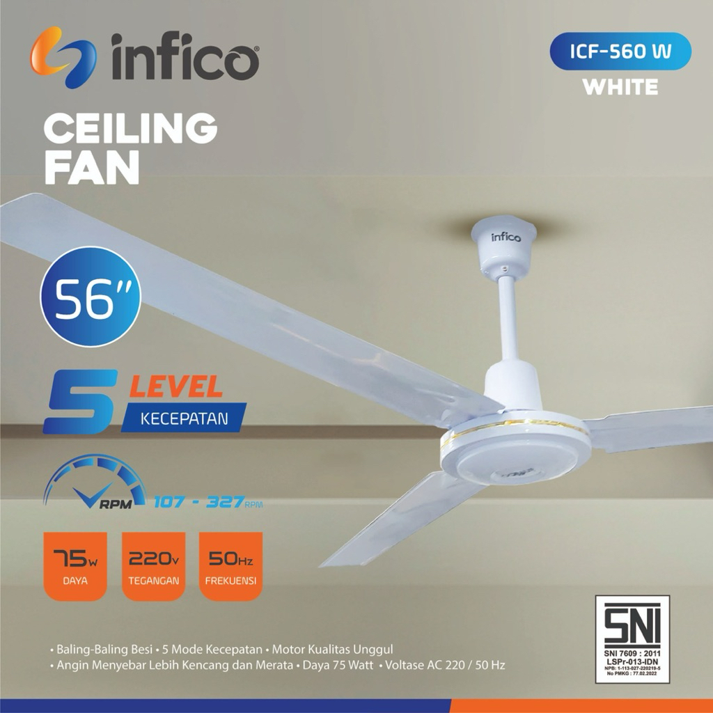 Infico Profan Icf-560W Ceiling Fan / Kipas Angin Plafon 56Inci / Kipas Baling Atap / Kipas Angin Gantung Sni