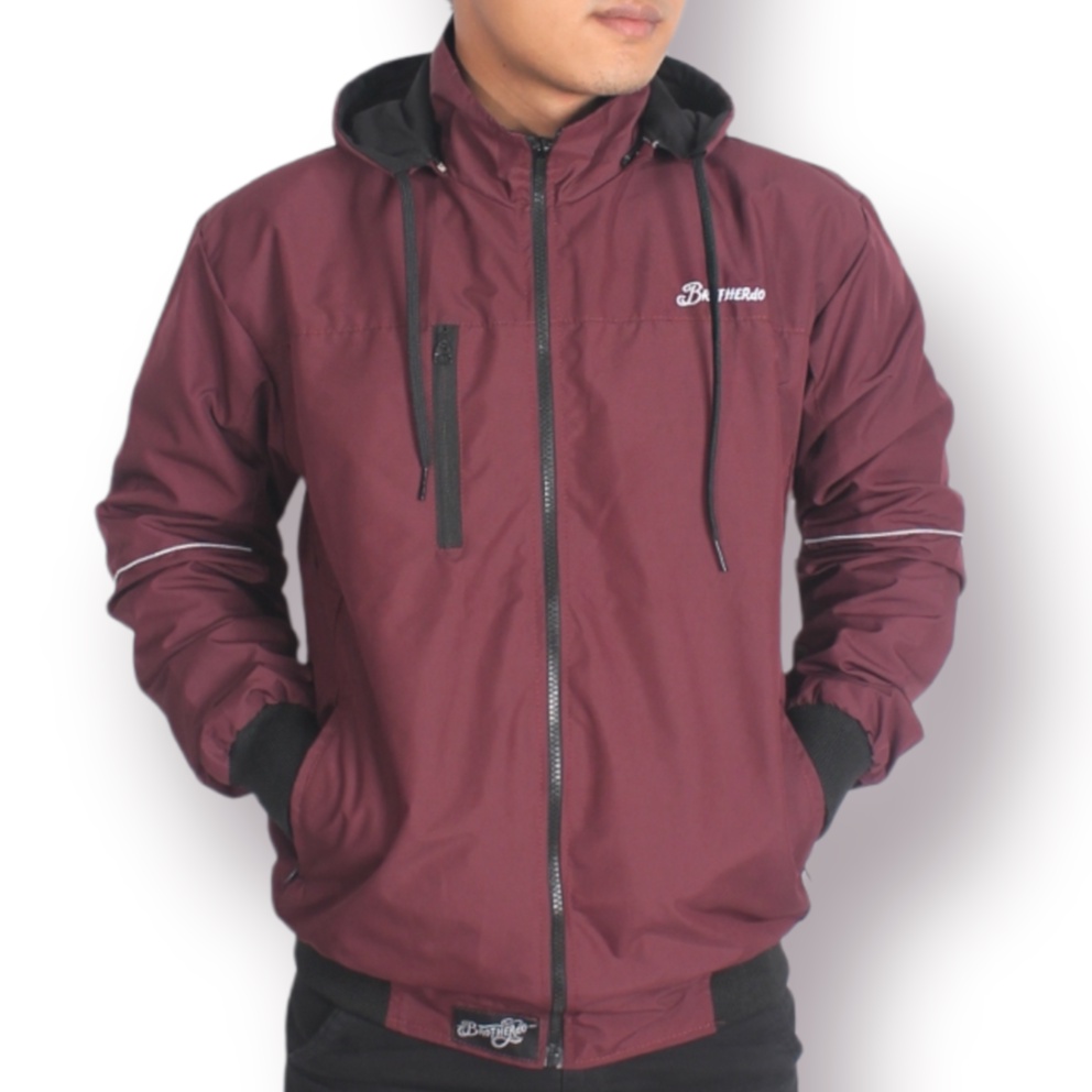 Jaket pria parasut taslan JN waterproof polos Brotherdo terbaru