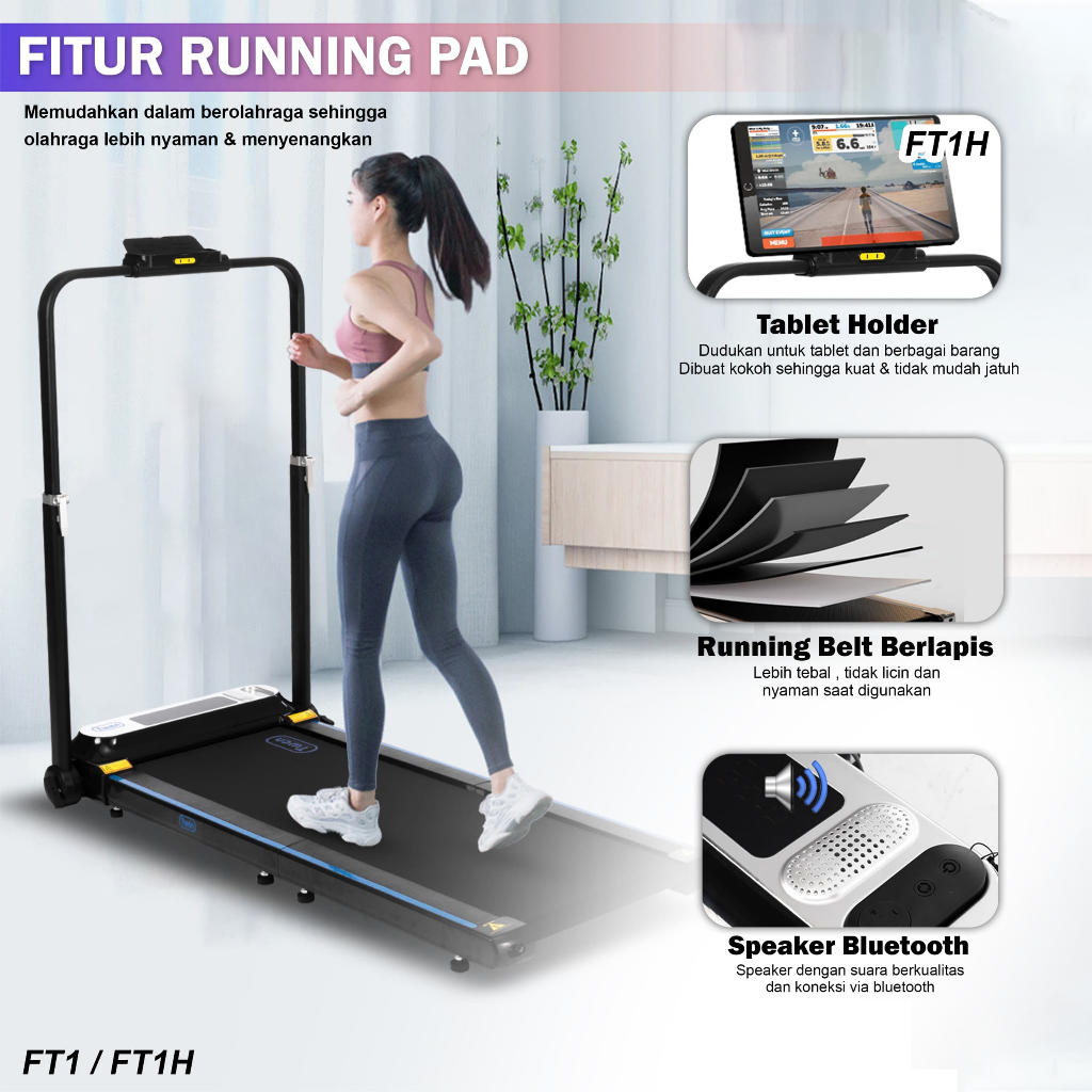 TWEN FT1 FT1H Treadmill Elektrik Treadmill Portable Walking Pad Running Pad Alat Olahraga