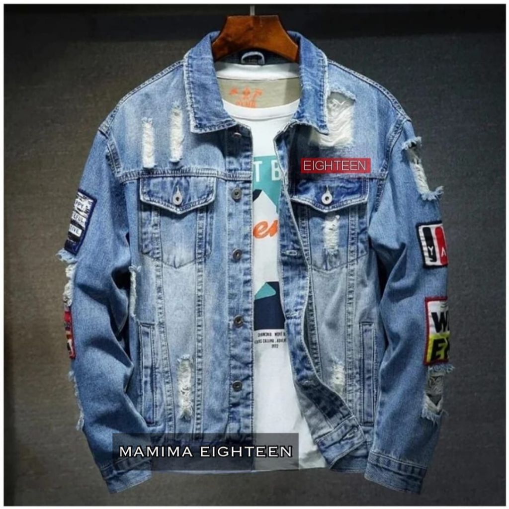 JAKET JEANS PRIA COWOK EL TEMPEL SOBEK LEpIS TEBARU jumbo bodir