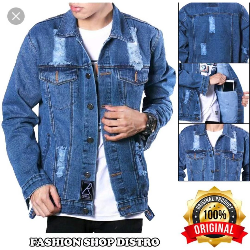 BAYAR DITEMPAT ' JAKET JEANS SANDWASH PRINTING - JAKET GAMBAR BELAKANG - JAKET SOBEK