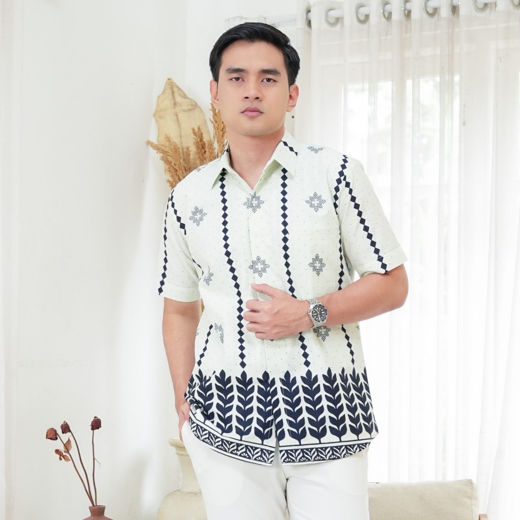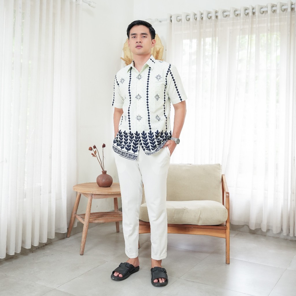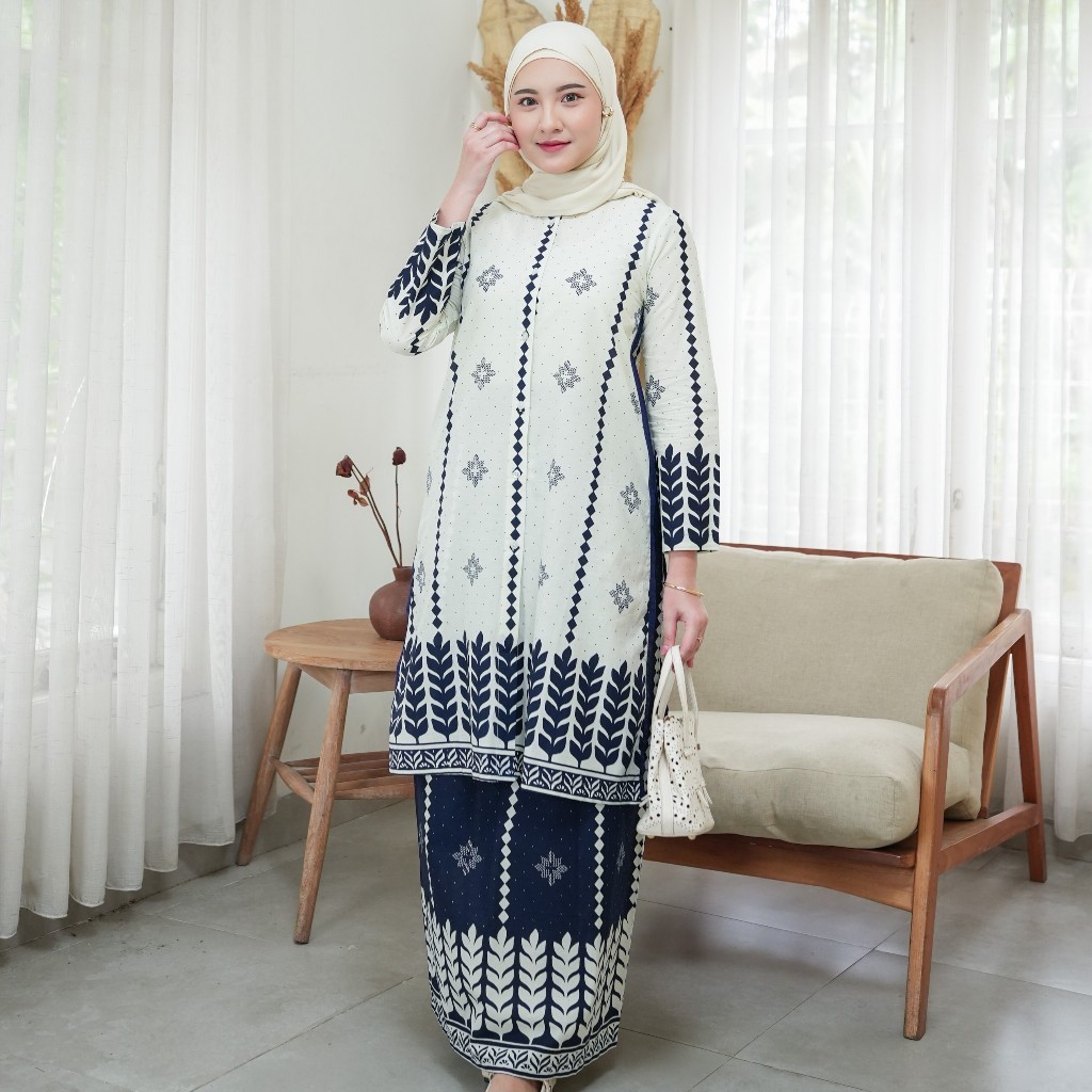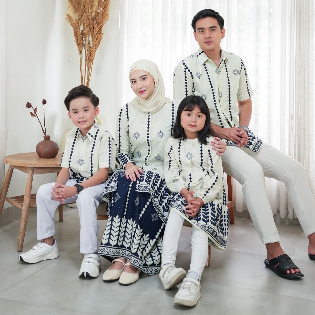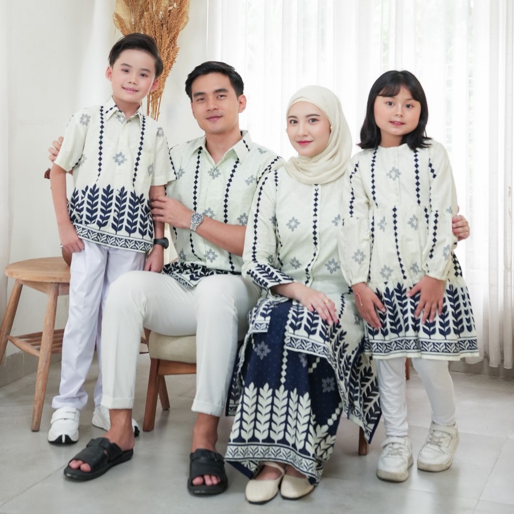 Lalita Atasan Wanita Tunik Batik Modern Casual Family Set Sarimbit Keluarga Baju Lebaran Putih Navy