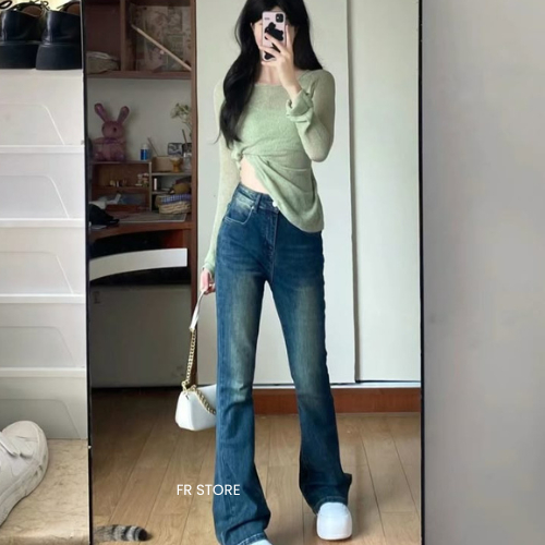 Highwaist Cutbray Jeans Retro WanitaCelana Jeans Cutbray Wanita Model Retro Korea Terbaru
