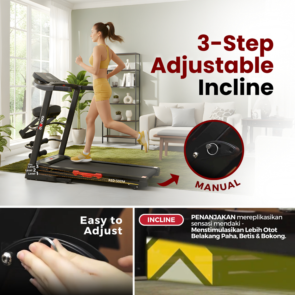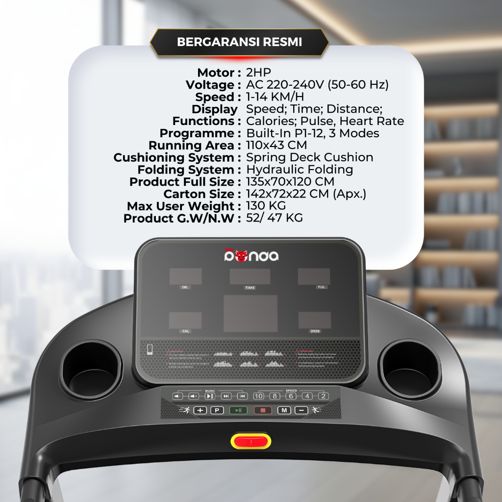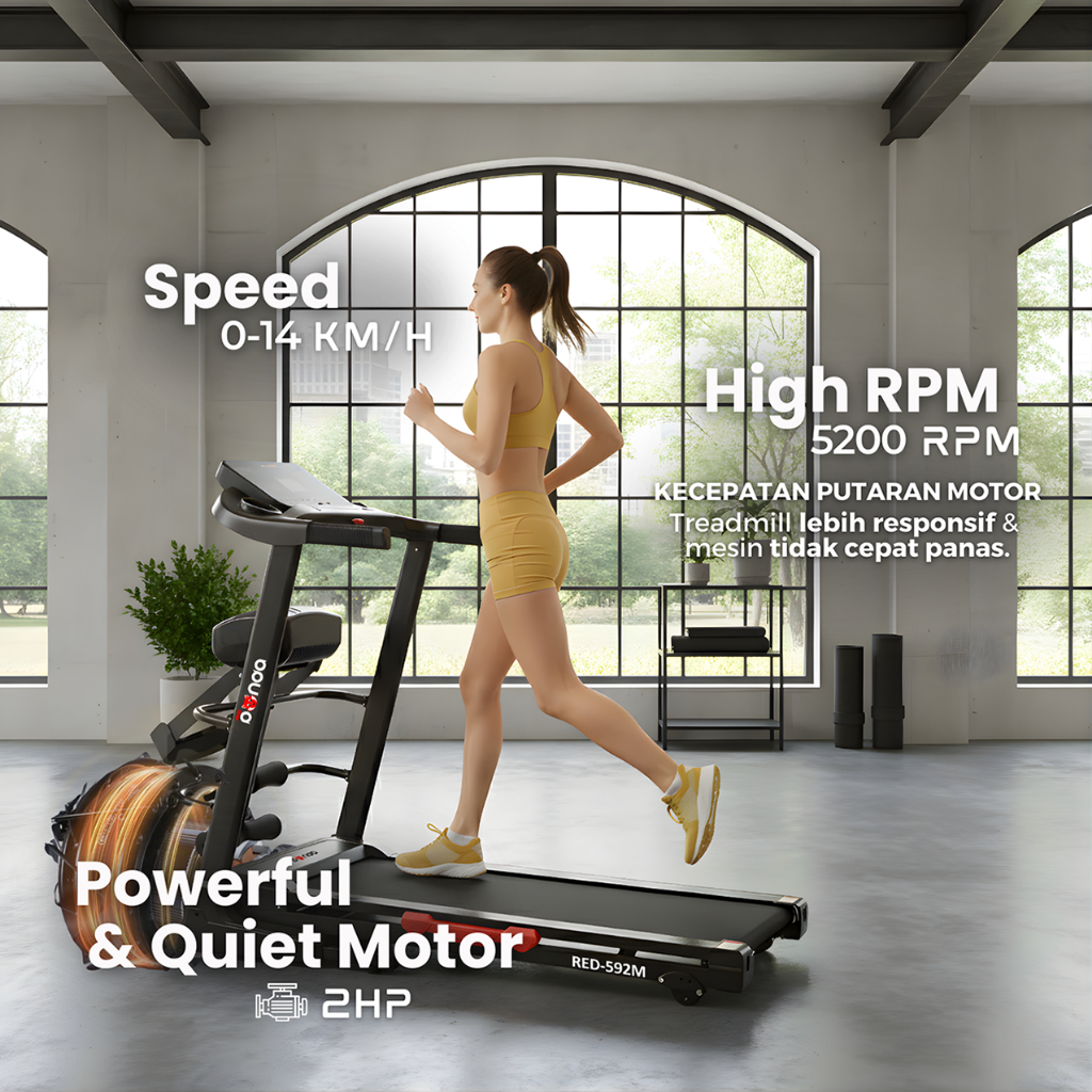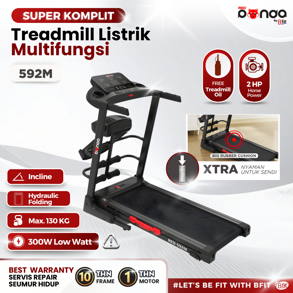 Treadmill REDPANDA Elektrik 592M Multifungsi Murah Listrik Lipat Portable Low Watt Fitness Gym