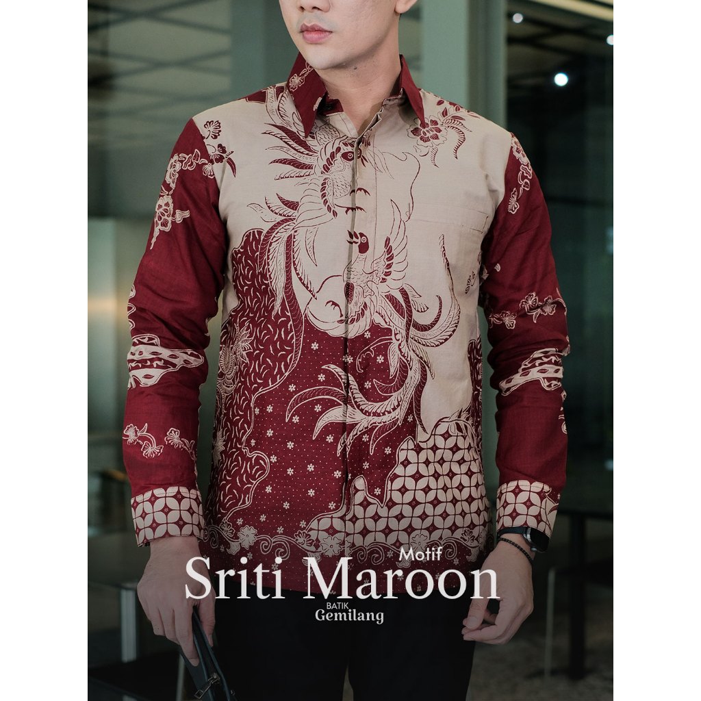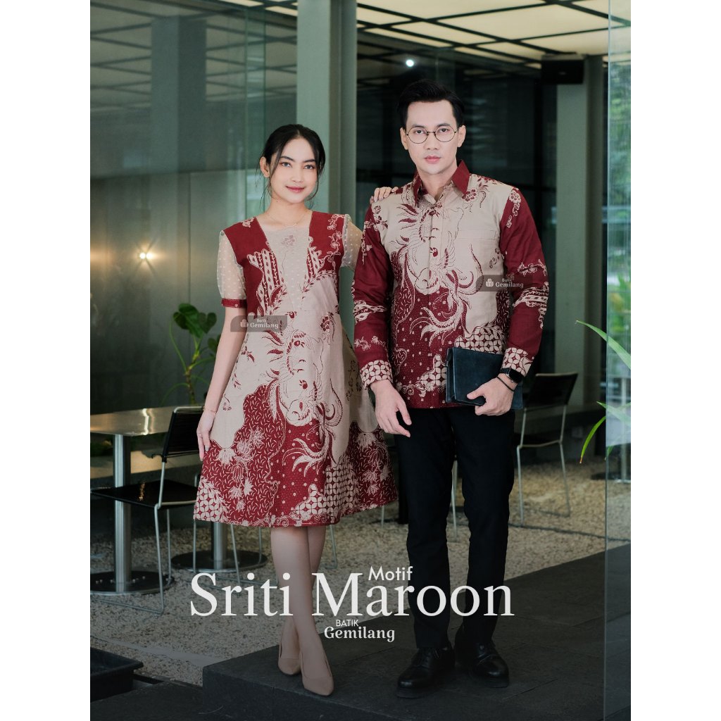 Motif Sriti Maroon - Batik Couple Elegan Wanita Pesta Kemeja Dress Premium Pria Kekinian Couple Natal Elegan Couple La