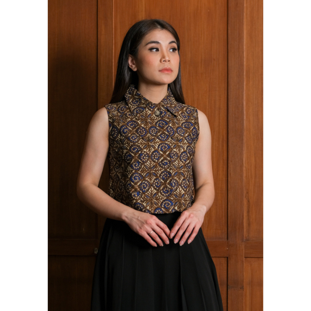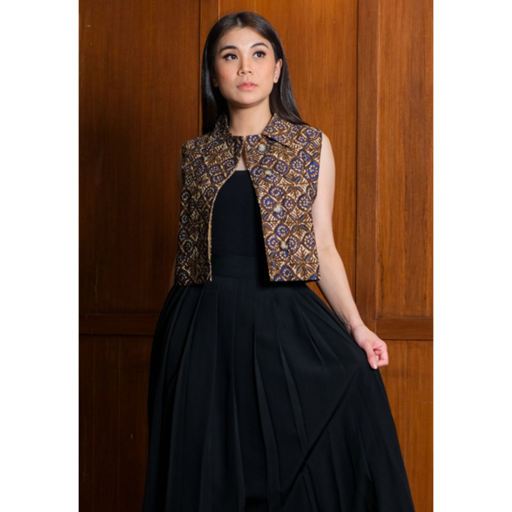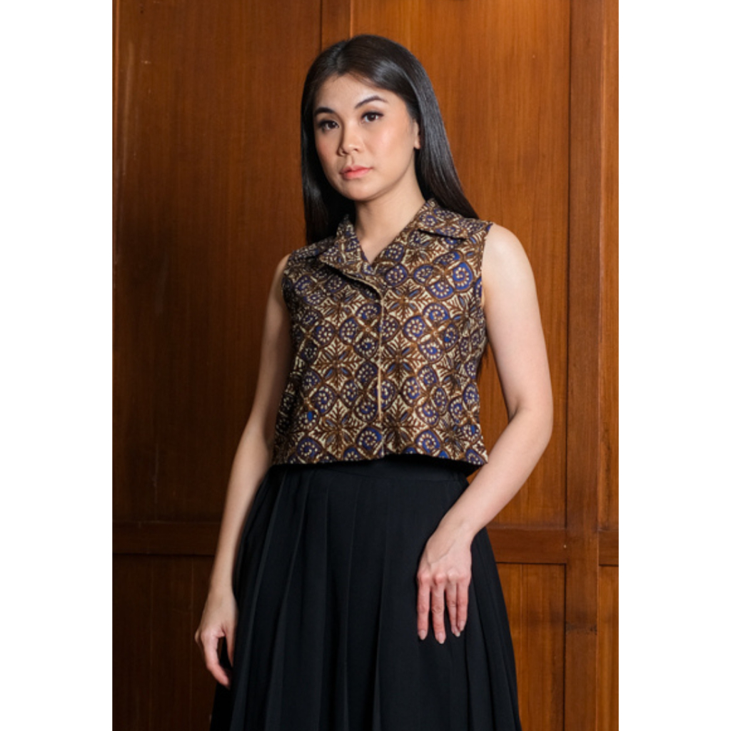 Kichi Batik Vest Blouse Rahmi Katun Coklat/Biru