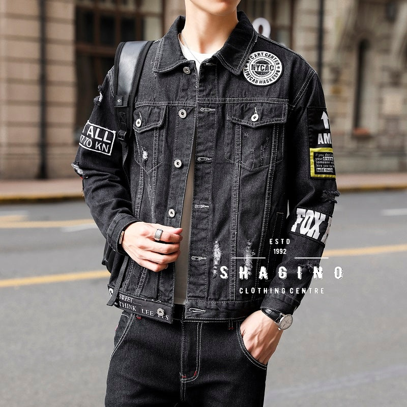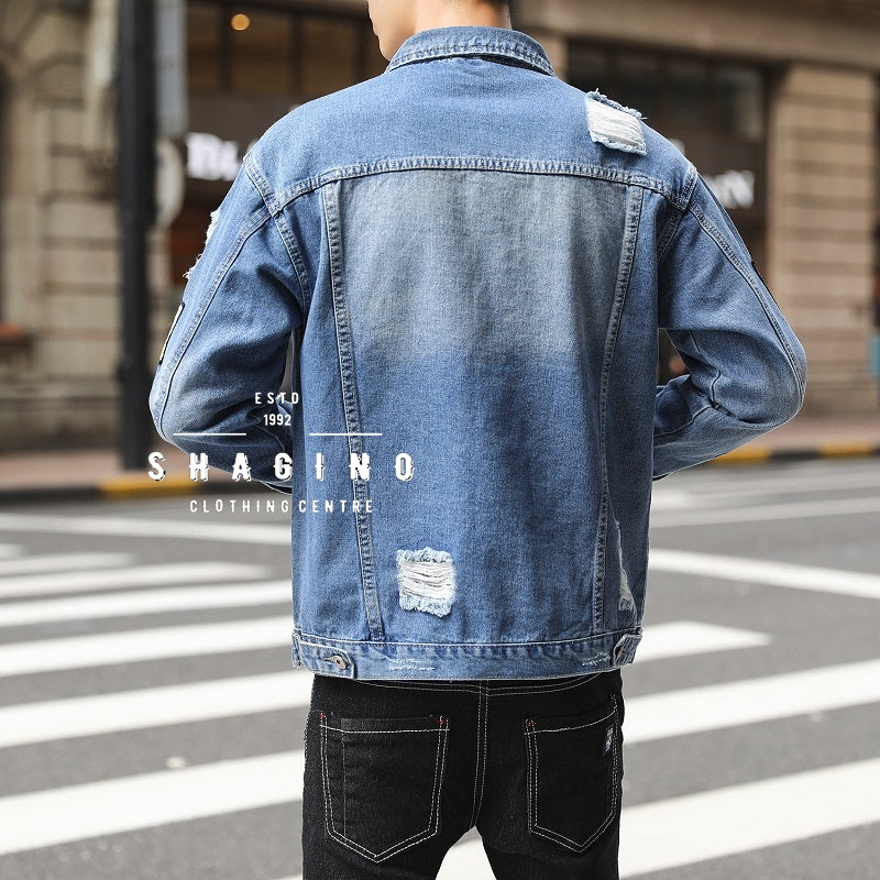 Shagino | Jaket Jeans Terbaru / Jaket Jeans Pria Dan Wanita / Jaket Jeans Pria Korean Style / Jaket Jeans Pria Sobek / J