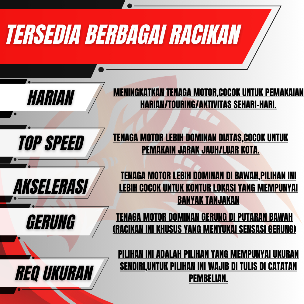 HARIAN (REKOMENDASI), TOP SPEED, AKSELERSI, RISETAN GERUNG, REQ UKURAN SENDIRI