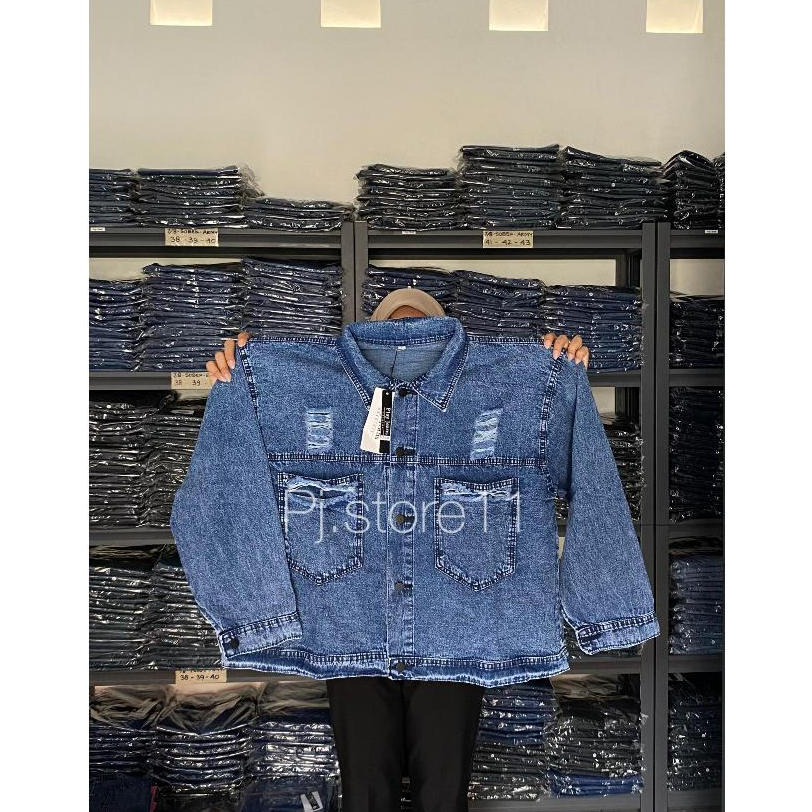 Jaket Jeans Ripped Jumbo Bigsize PRIA WANITA/Jaket Jeans Snow Oversize Unisex [ld120,130,140]