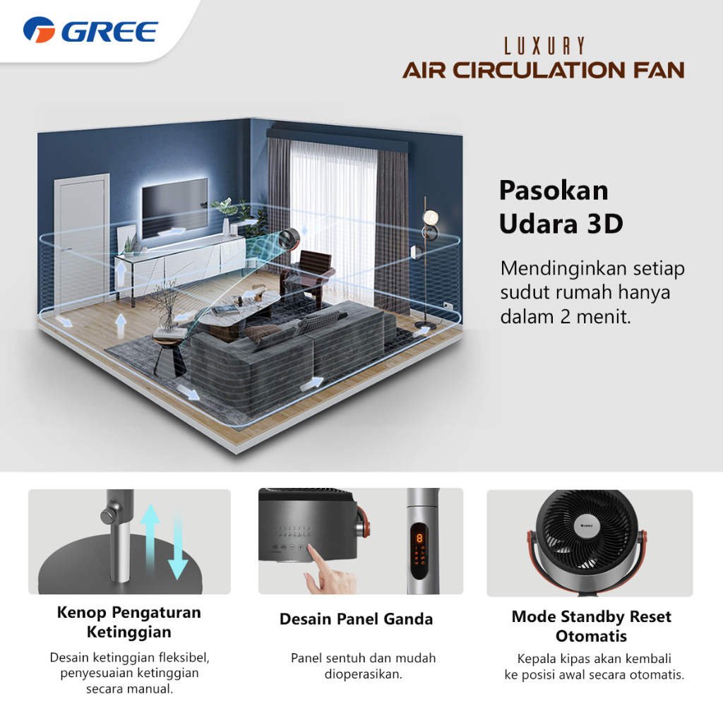 Gree - Air Circulation Fan - Swing Otomatis - Dilengkapi Ion Plasma - Gcf-Circool14L