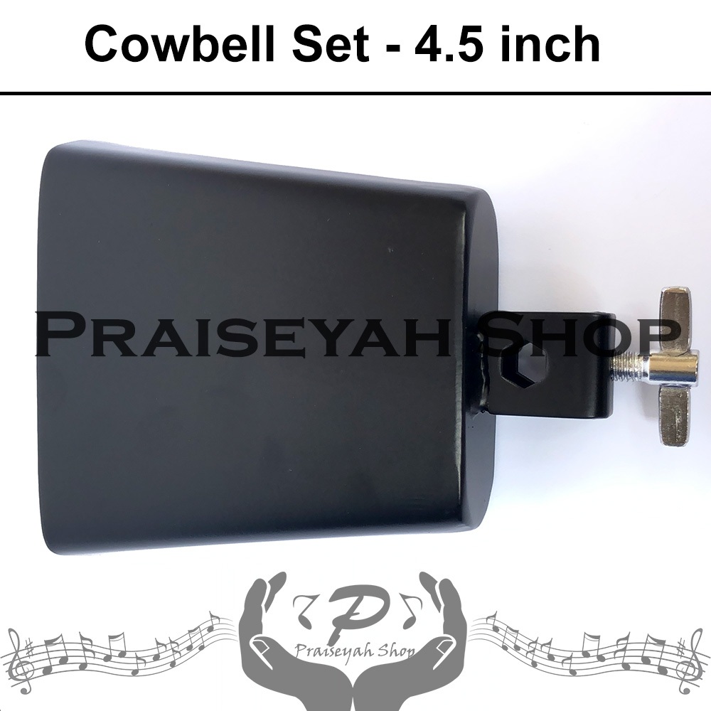 Cowbell Drum Perkusi Hitam 4.5" Include Holder Chrome