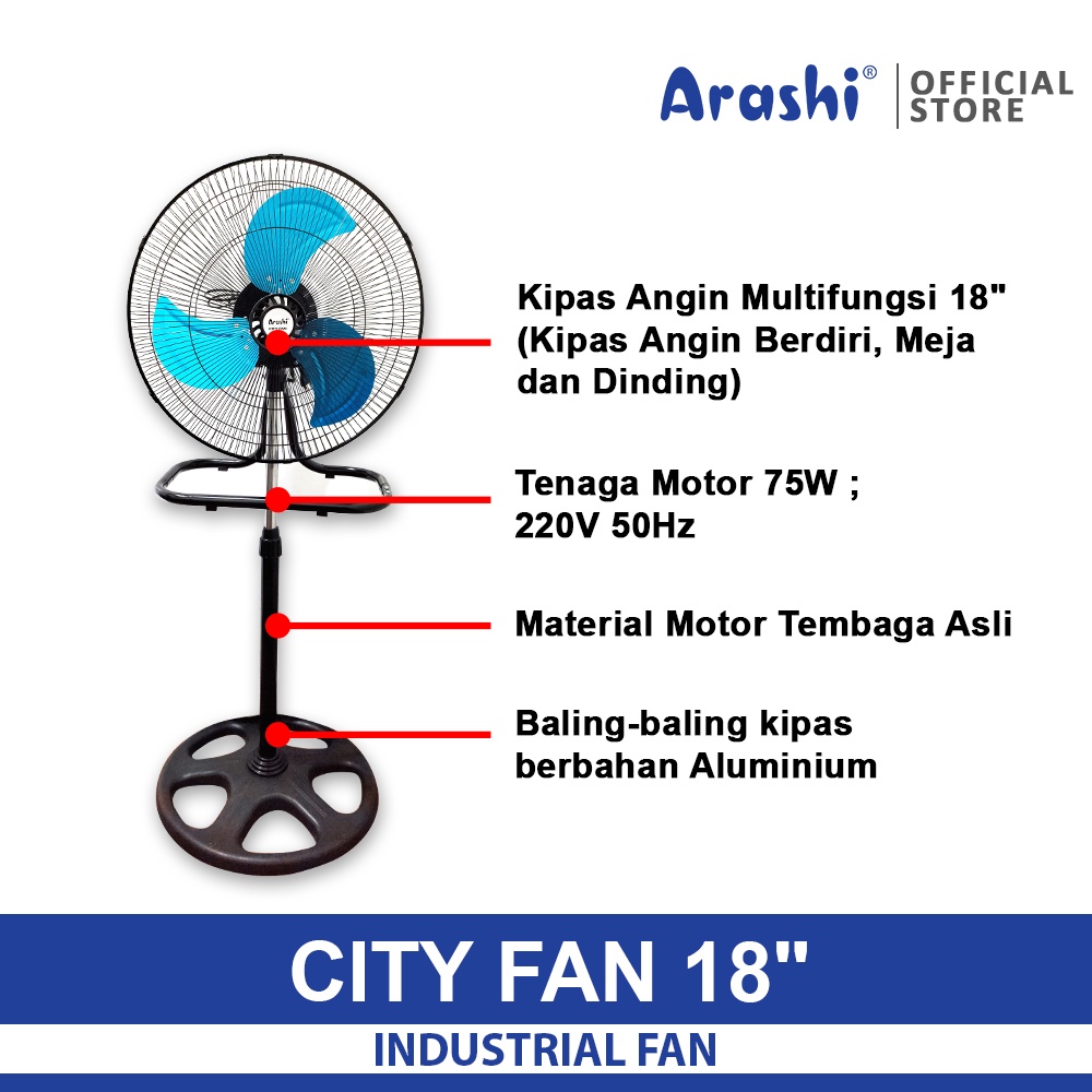 Arashi City Fan 18" Kipas Angin Multifunction 3In1/Stand Fan/ Desk Fan