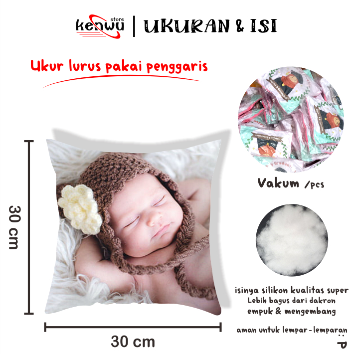 Kenwustore Bantal Custom Foto 30X30Cm 1 Sisi - Bantal Foto Custom - Bantal Muka Custom