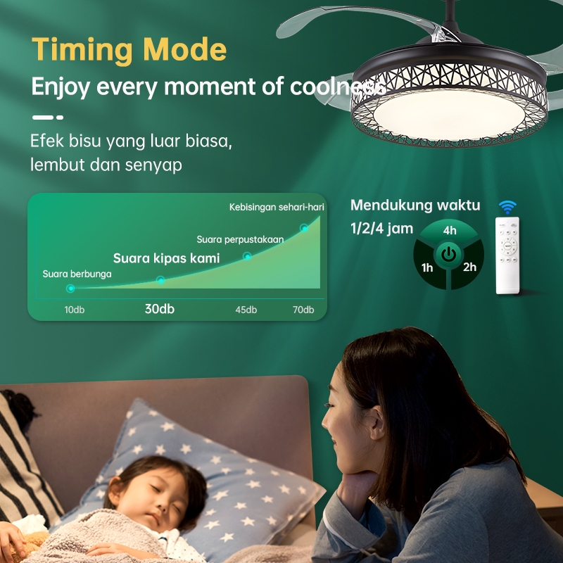Gogeous Lampu Kipas Angin Gantung Plafon 2In1 42Inch Tak Terlihat Remote Senyap Kipas Angin Plafon Dengan Lampu Led R Ta