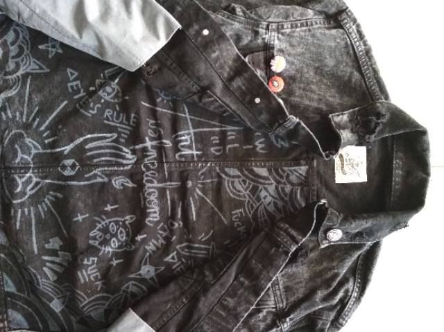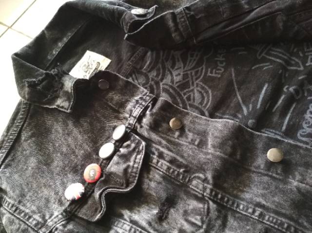 Galfinc Jaket Jeans Vintage Washing Custom Black Lemmy Extreme ripped