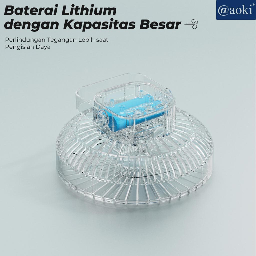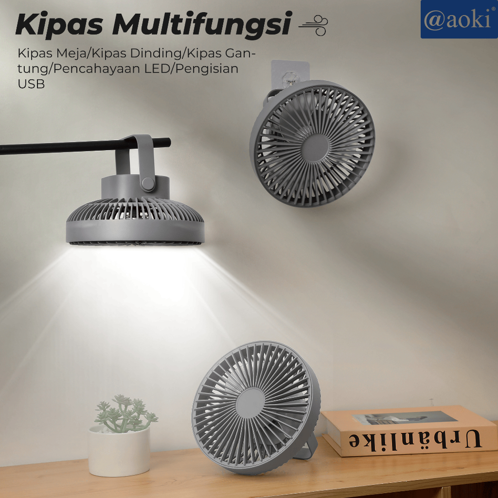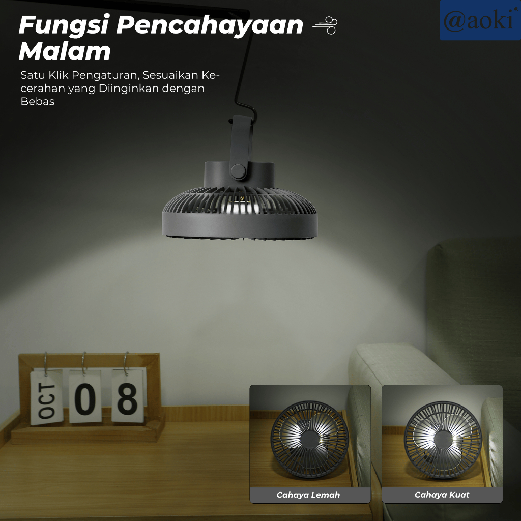 Aoki Kipas Meja 7.1Inch Dinding Gantung Dengan Baterai Lithium, 360° Rotasi, Pengisian Tipe-C, Dan Pencahayaan Led