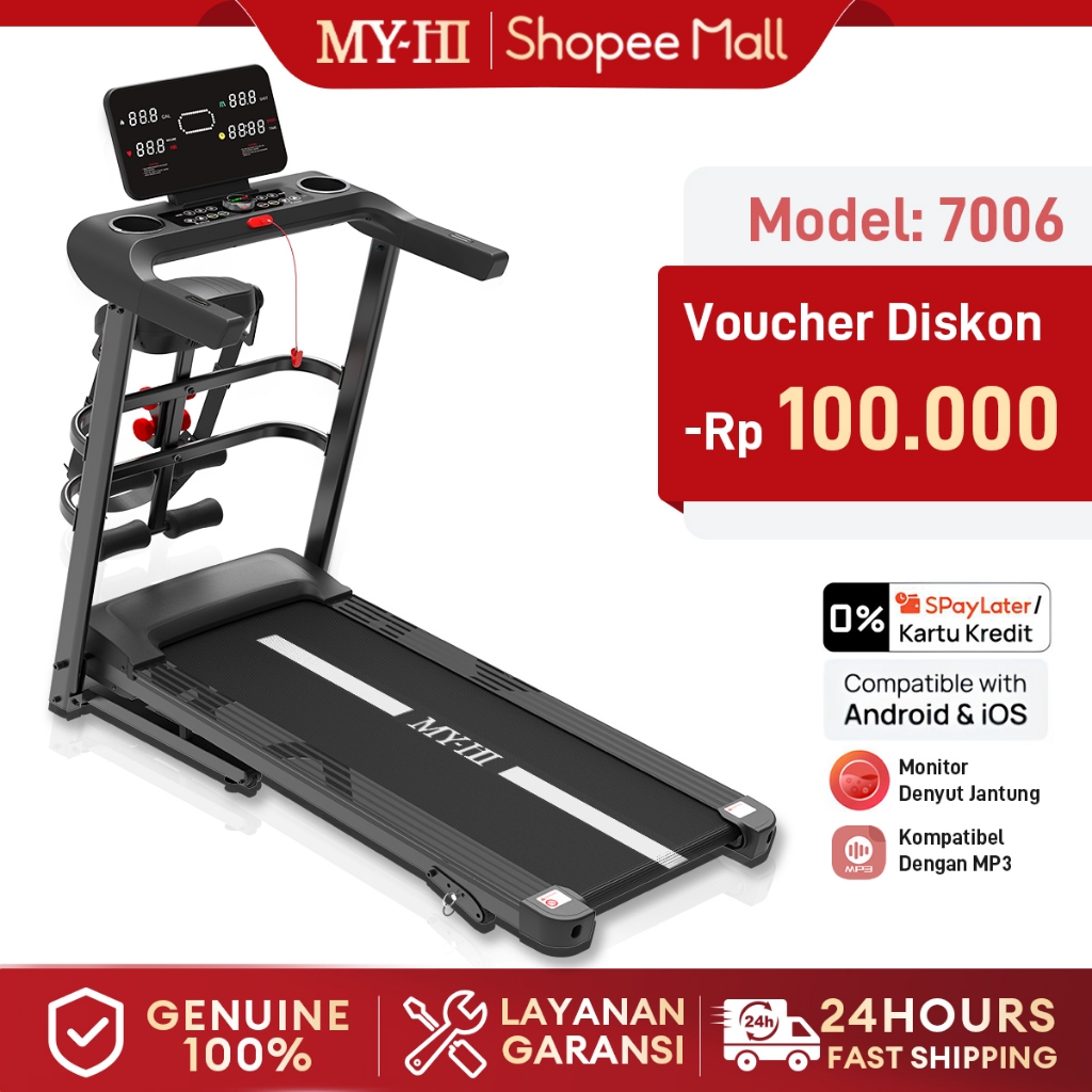 MY-HI Treadmill electric low watt Treadmill garansi 7006 Layar LCD Bluetooth Musik BB 480KG 0-15km/h