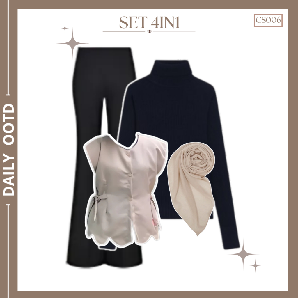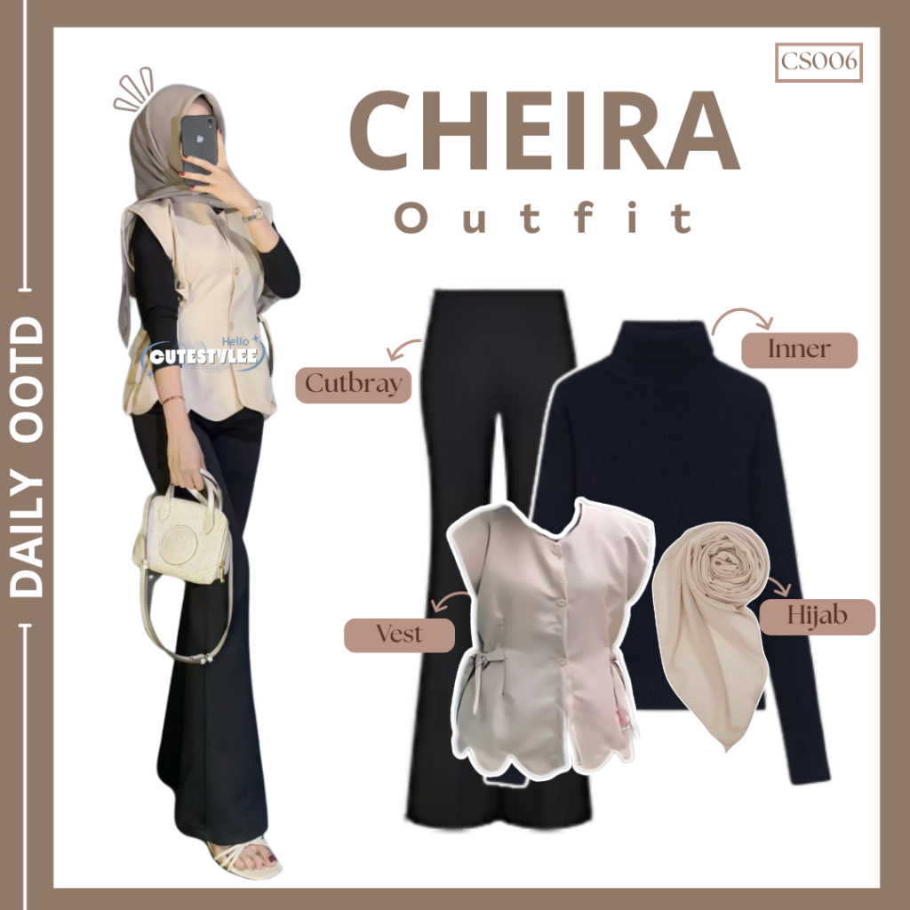 3in1 One Set Wanita | Vest Cheris, Inner Manset, Celana Cutbray, Bella Square | Outfit Kekinian CS06