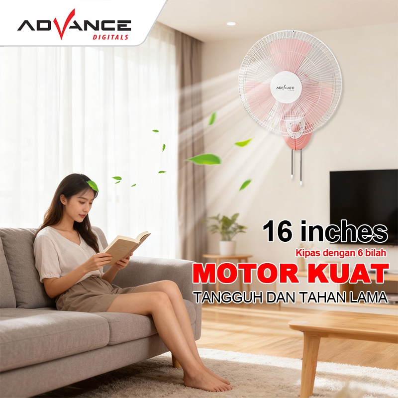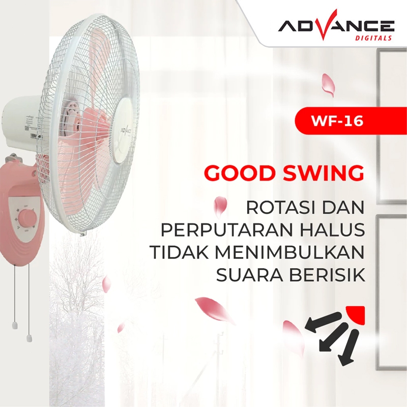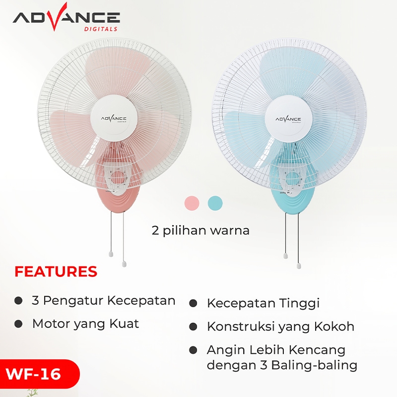 Advance Kipas Angin Dinding 16 Inch Wf-16 Hembusan Angin Kencang Kipas Angin Tembok Kipas Low Watt 60W Wall Fan Hemat Li