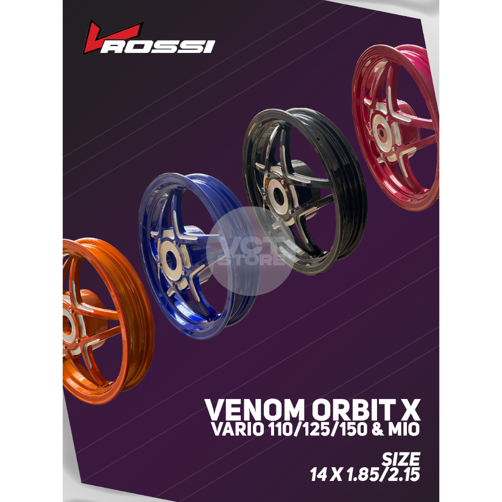 VRossi Velg Racing PALANG 5 BINTANG VENOM ORBIT X Vario 110/125/150 dan Mio (Uk. 14x185/215) | Black - Silver - Orange - Blue - Purple | 1 SET