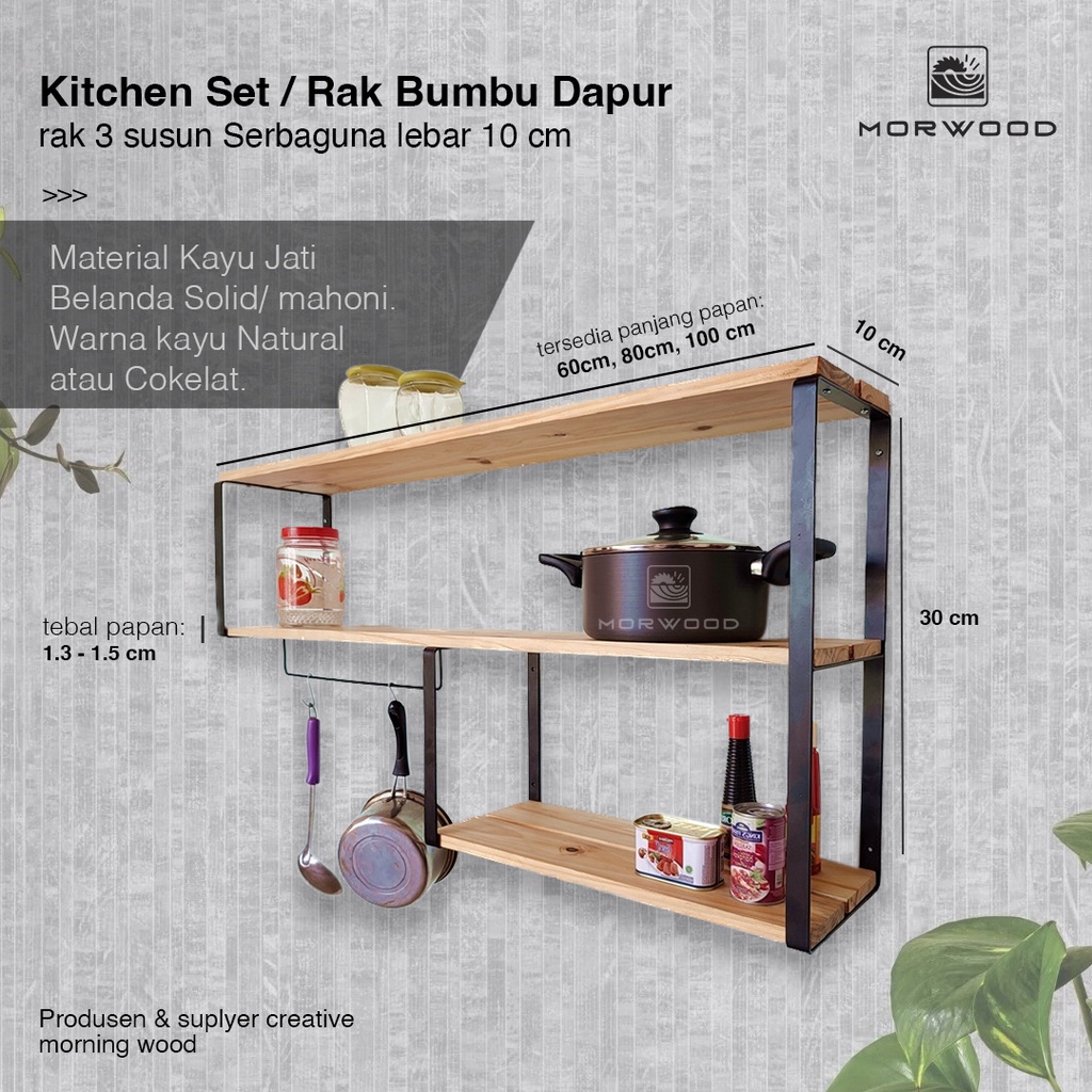Terlaris Kitchen Set / Rak Bumbu Dapur Lebar 3 Susun Serbaguna Lebar 10 Cm / Kayu Besi Minimalis Gantung Dinding / Rak K