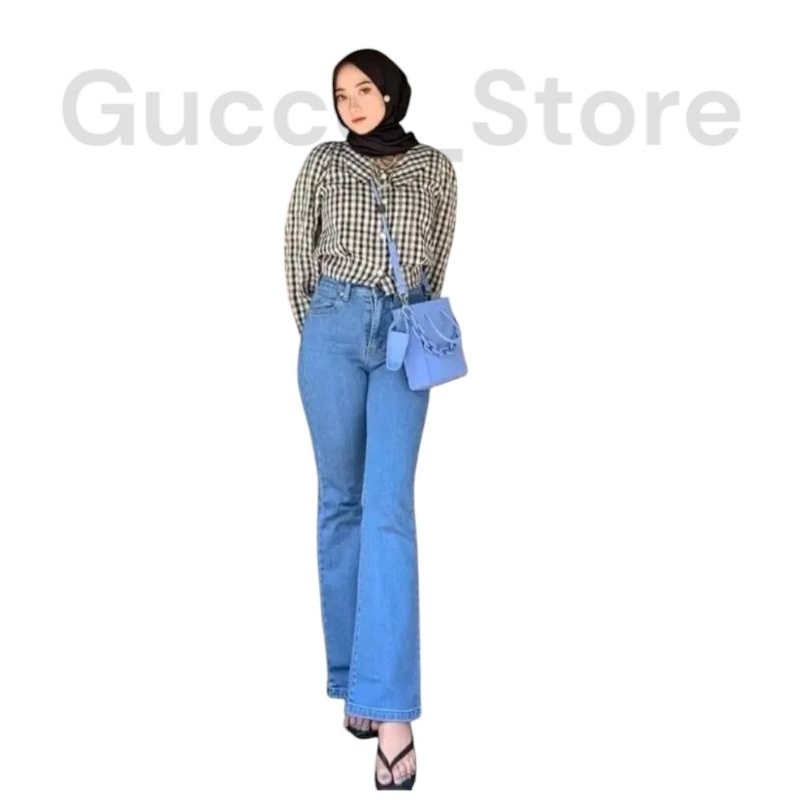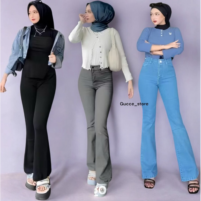 CELANA JEANS CUTBRAY HIGHWAIST STREACH WANITA FIT& FLARE LOOSE KEKINIAN BAHAN NGARET OUTO JENJANG