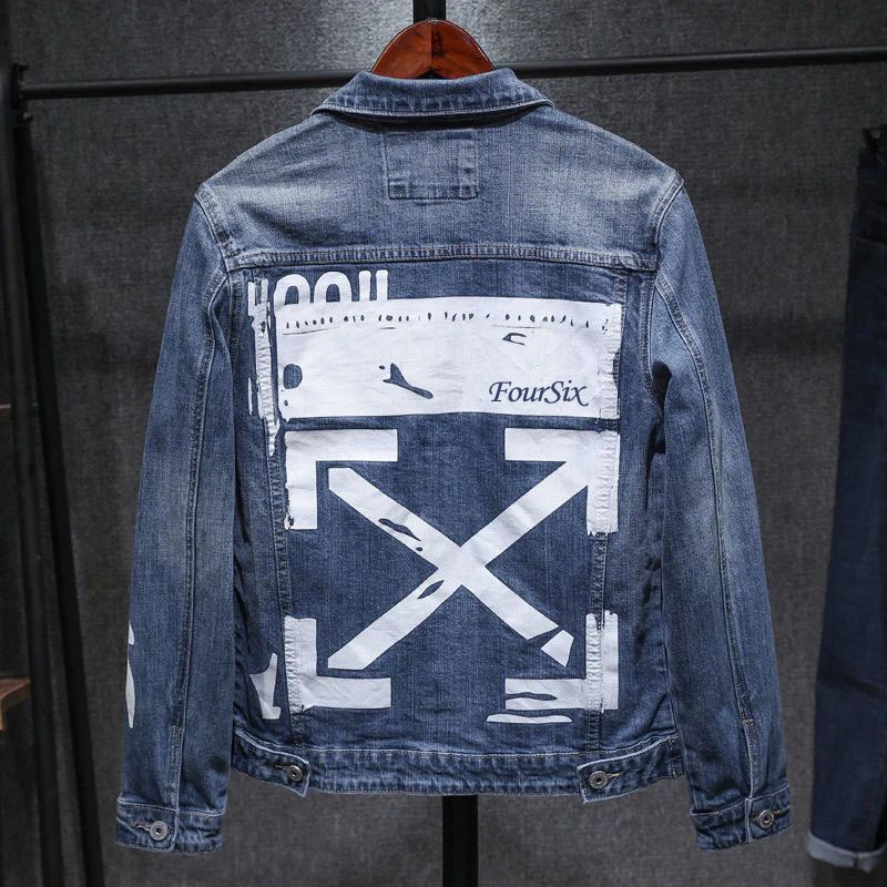 () Jaket Jeans New el Printing Sablon DTF Bahan Denim Jaket Pria Casual size M/L/XL/XXL