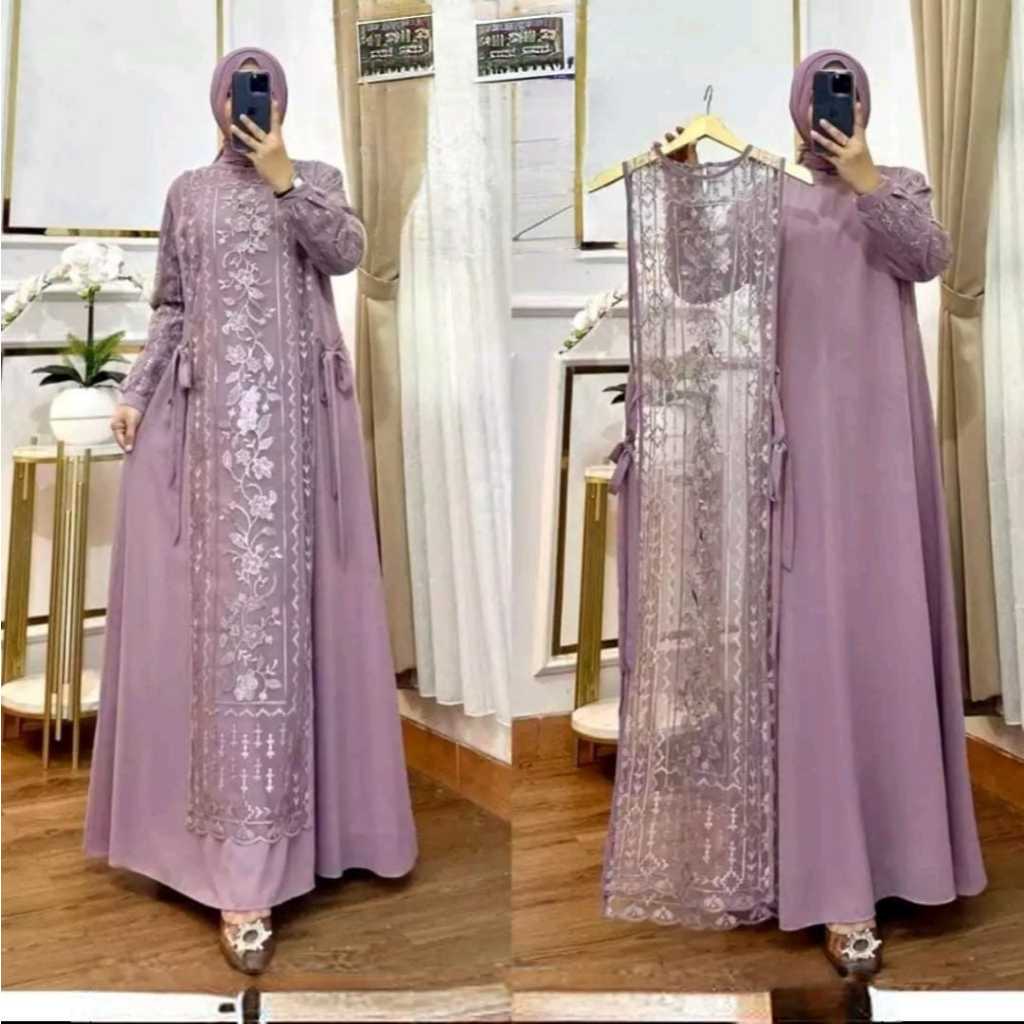 DP 0 Wilona Dress Kondangan Ceruty Babydoll Mix Outer Brokat Tille Akar Cantik Elegant MLXL DAN XXL