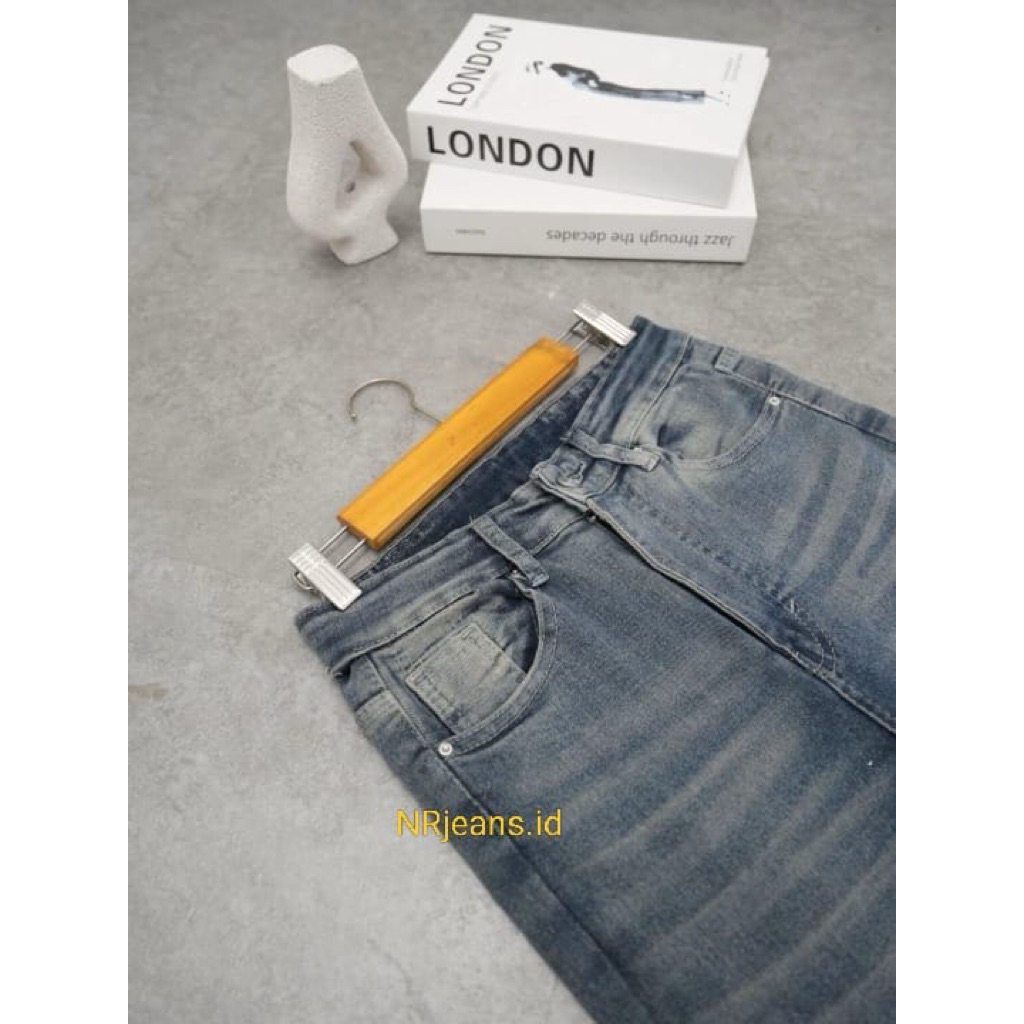 Celana Jeans Cutbray Wanita High Waist Jennie Lebar Bawah Celana Denim lipat Korea Trend 2025