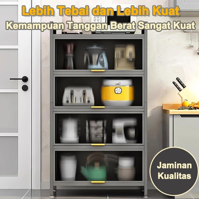 Lemari Dapur Lemari Piring Minimalis Rak Dapur Besi Serbaguna Rak Penyimpanan Multi-Layer Rak Oven Microwave
