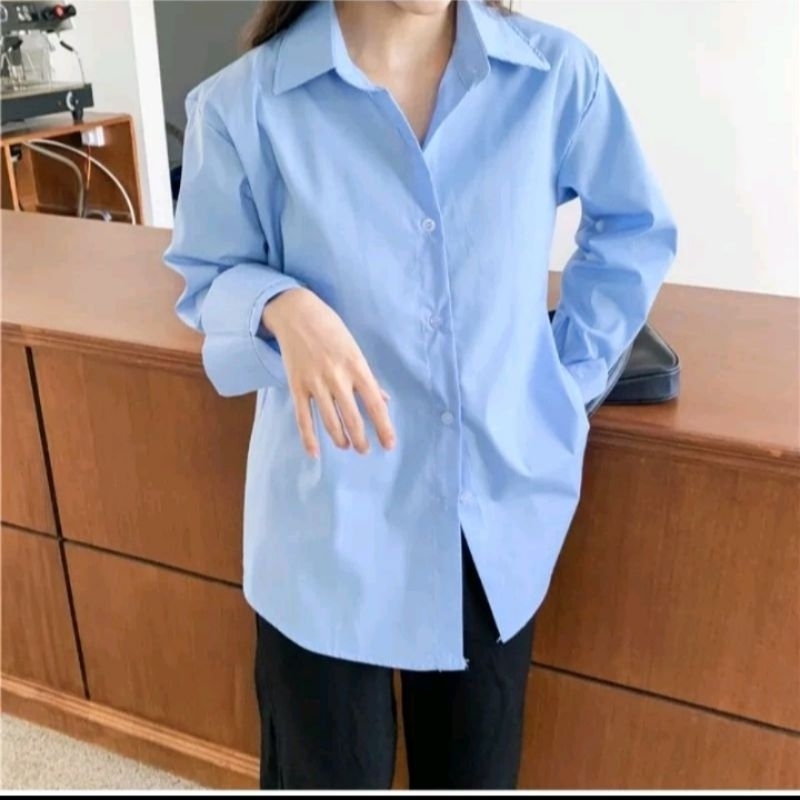 Kemeja Wanita Katun Basic Lengan Panjang Kasual hitam Putih Navy Biru Muda Atasan wanita Kerja
