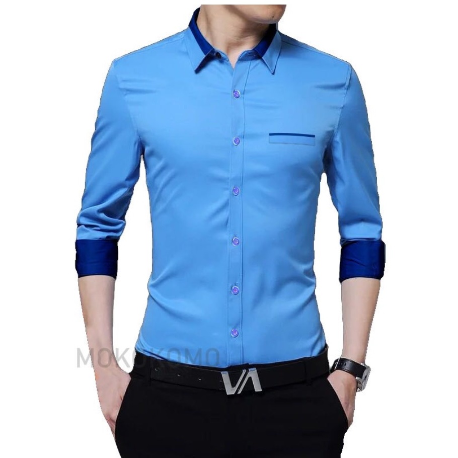 FortKlass raffi kemeja polos pria lengan panjang formal slimfit cowok cowok cowo Slim Fit Casual Tangan Formal Kerja Kan
