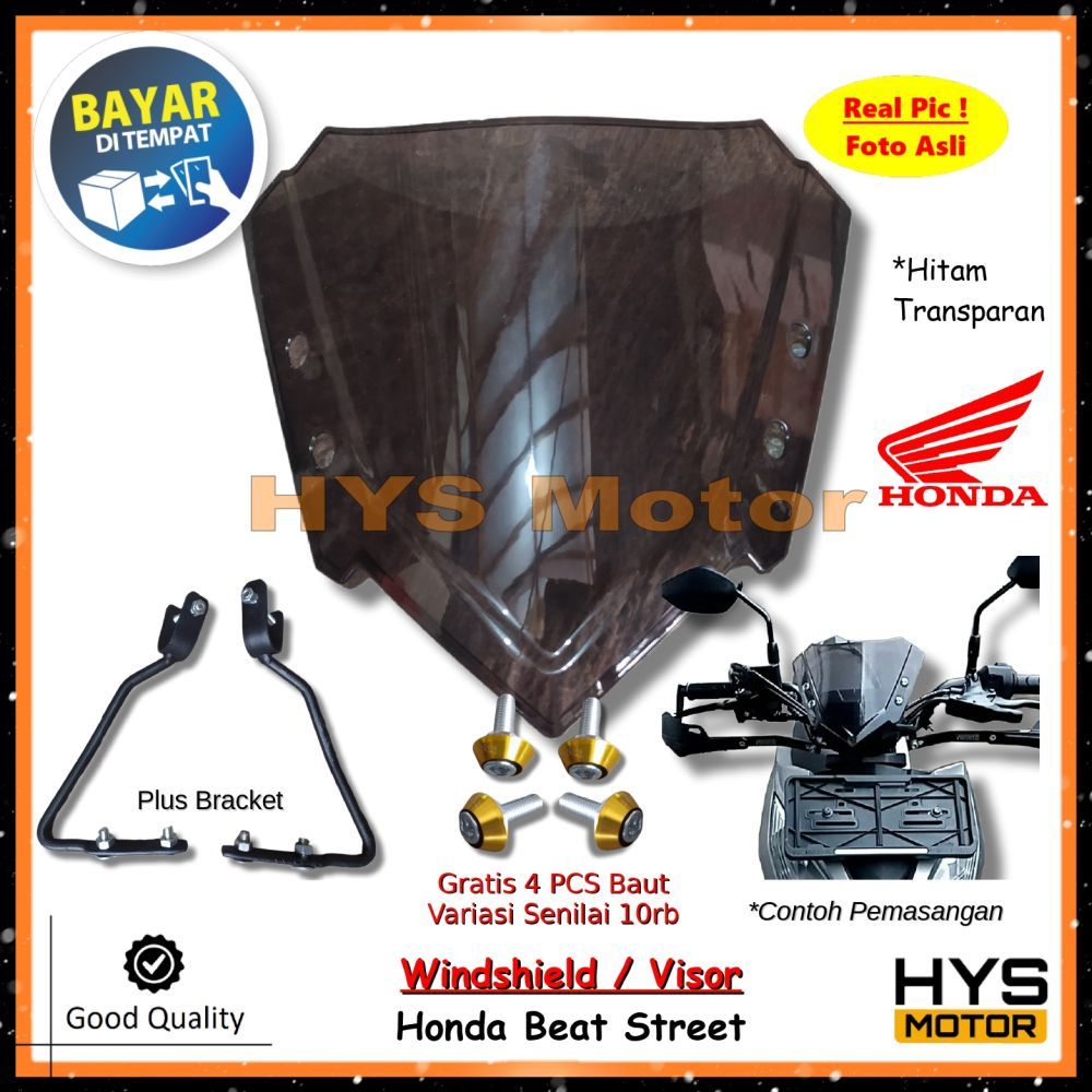 HYS Kaca Depan Variasi HONDA Beat Street - Visor Windshield Winsil Motor Plus Bracket Bonus Baut