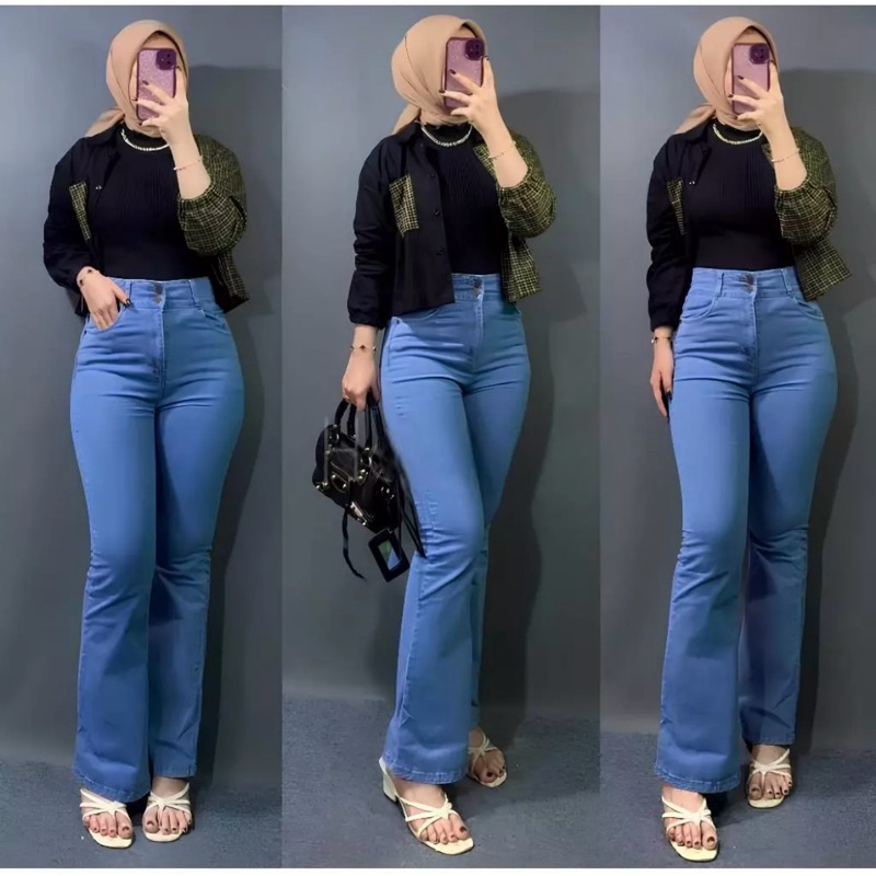 Fatheena Fashion Celana Cutbray Jumbo Jeans Premium | High Waist Jumbo Cutbray Streach | Cutbray Jeans Wanita Jumbo