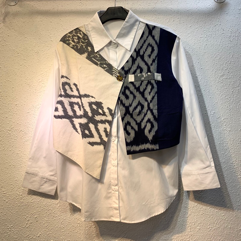 Frawlin Atasan Wanita Batik Lengan Panjang Tenun Blouse Kemeja Kantor