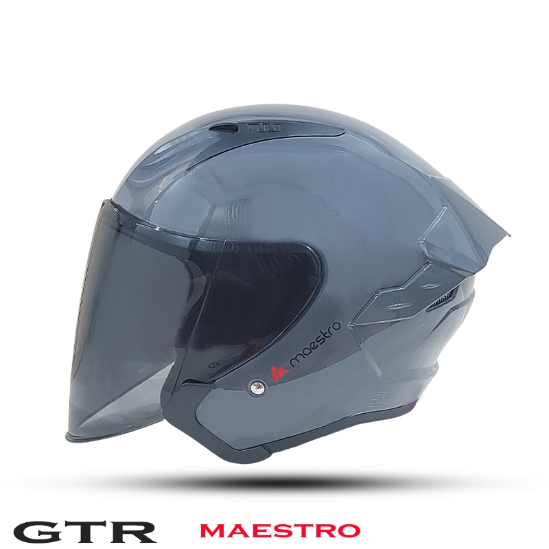Helm Pria Half Face Dewasa GTR MAESTRO Putih Kaca Datar Hitam SNI