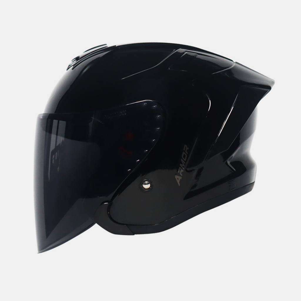 Helm JS Armor Ori Black Dof - Half Face Helmet - Helm Pria Keren Anti Silau Paket Ganteng sudah SNI