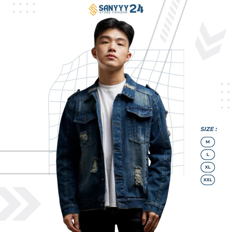 JACKET DENIM JEANS PRIA POLOSAN ELEGAN SOBEK NEW COLECTION JACKET DENIM